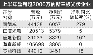 據(jù)統(tǒng)計,22家新三板光伏企業(yè)上半年盈利實現(xiàn)同比增長,占已披露半年報光伏企業(yè)的58%,11家企業(yè)凈利潤增幅超過1倍。