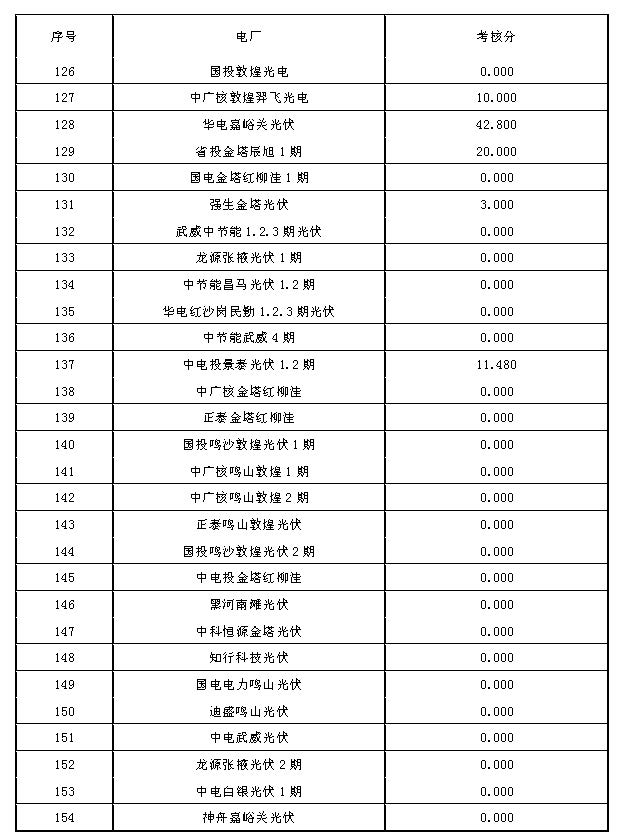中國儲能網(wǎng)訊:2017年7月份甘肅電網(wǎng)“兩個細則”考核工作已經(jīng)完成,現(xiàn)對各電廠考核分數(shù)(不含補償及分攤)結(jié)果進行預(yù)公告,請各發(fā)電廠認真核對考核結(jié)果,如有疑問,請于8月15日前與甘肅能源監(jiān)管辦或甘肅省電力公司溝通聯(lián)系。