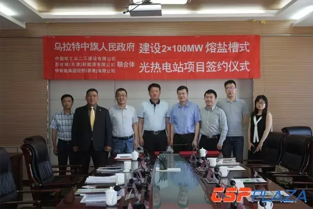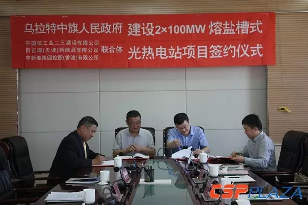 中國(guó)儲(chǔ)能網(wǎng)訊:6月1日上午,由中國(guó)核工業(yè)二三建設(shè)有限公司(簡(jiǎn)稱中核二三)、百吉瑞(天津)新能源有限公司(簡(jiǎn)稱百吉瑞)與中新能集團(tuán)控股(香港)有限公司(簡(jiǎn)稱中新能)三方組成的聯(lián)合體與烏拉特中旗人民政府簽署了關(guān)于在烏拉特中旗建設(shè)2×100MW熔鹽槽式光熱發(fā)電項(xiàng)目的合作開(kāi)發(fā)框架協(xié)議。