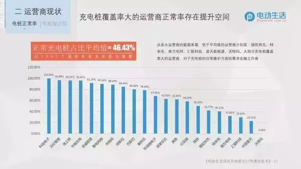 從各大運(yùn)營商的數(shù)據(jù)來看,低于46.43%平均值的運(yùn)營商有:駱駝快充、特來電、南方電網(wǎng)、匯能科技、中國普天、沃特瑪??梢姵潆姌陡采w率大的運(yùn)營商,對于充電樁的日常維護(hù)方面的需求會隨之升高。