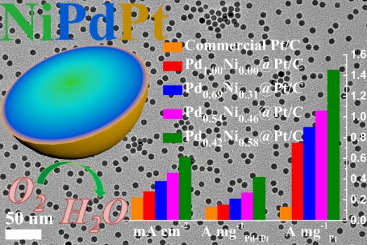 中國儲能網(wǎng)訊:近日,上海交通大學(xué)機(jī)械與動力工程學(xué)院燃料電池研究所章俊良教授課題組成功制備出具有單分散性的球形高活性PdxNi1-x@Pt/C核殼納米催化劑,該催化劑在不損失燃料電池壽命的前提下,可大幅降低燃料電池的Pt用量,降低燃料電池成本。這種新型催化劑有望用于下一代超低鉑燃料電池,助力燃料電池汽車的大規(guī)模產(chǎn)業(yè)化開發(fā)。