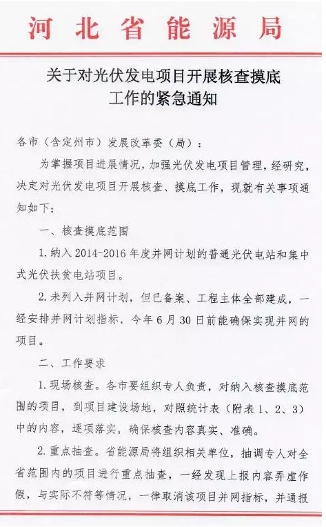 中國儲(chǔ)能網(wǎng):通知要求:各地市發(fā)改委對(duì)納入2014-2016年并網(wǎng)計(jì)劃的普通光伏電站和集中式扶貧電站以及未列入并網(wǎng)計(jì)劃、但已備案、工程主體全部建成、630前能確保并網(wǎng)的項(xiàng)目進(jìn)行全面現(xiàn)場核查以及重點(diǎn)抽查。一經(jīng)發(fā)現(xiàn)弄虛作假,與實(shí)際情況不符的情況,一律取消該項(xiàng)目并網(wǎng)指標(biāo),并通報(bào)批評(píng)和追責(zé)!