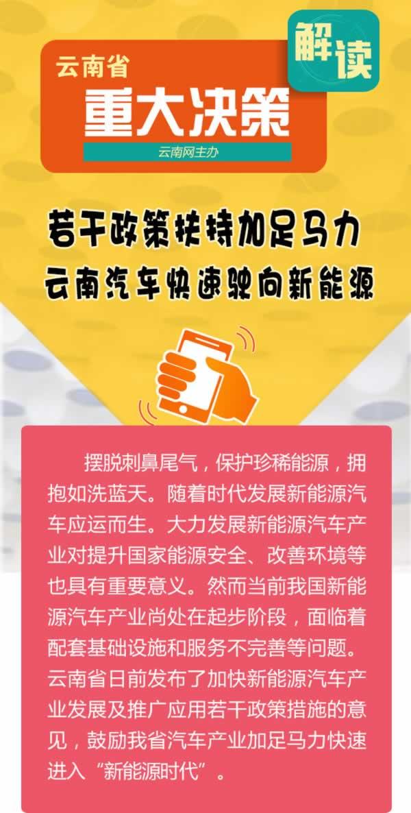 云南省日前發(fā)布了加快新能源汽車產(chǎn)業(yè)發(fā)展及推廣應(yīng)用若干政策措施的意見,鼓勵我省汽車產(chǎn)業(yè)加足馬力快速進入“新能源時代”。