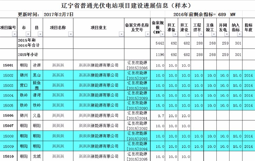 1.公開范圍:2015年和2016年經(jīng)全省各級能源主管部門備案的所有普通光伏電站項目