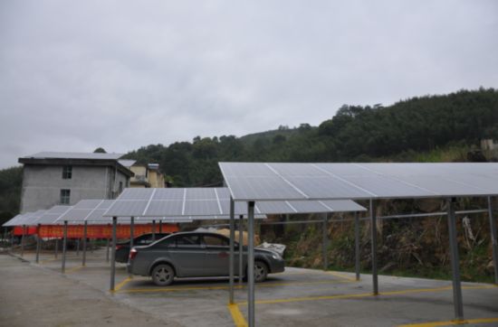 棚上發(fā)電,棚下為車輛遮陽擋雨,既是發(fā)電站又是車棚,充分利用了空間,實現(xiàn)了設(shè)備多功能化。負責九峰村光伏設(shè)備安裝的是尤溪宏康科技有限公司,該公司高級工程師徐貞滿介紹說,“這個光伏車棚面積500平方米,可以停放8輛小車和50多輛摩托車?!?