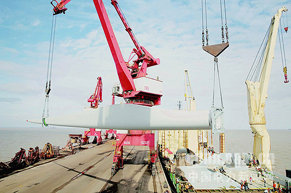 中國儲能網(wǎng)訊:2月9日上午,江蘇大豐港通用碼頭上,一片片近百米的風(fēng)電葉片正被緩緩吊起,平穩(wěn)裝船,準(zhǔn)備啟運美國,這是春節(jié)前后大豐港第二批風(fēng)電設(shè)備出口的一片繁忙景象,隨著國家“一帶一路”戰(zhàn)略的深入推進(jìn),大豐港出口國外風(fēng)電物貨將不斷增多,已成為全國第三大風(fēng)電設(shè)備出口基地。