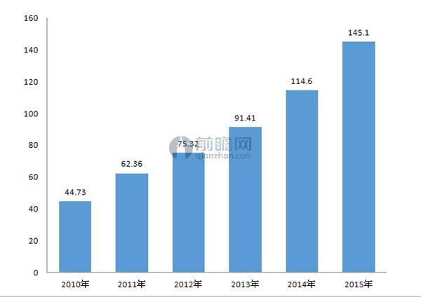 2010-2015年全國風(fēng)電裝機容量規(guī)模(單位:GW)