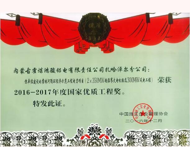 中國儲能網(wǎng)訊:近日,霍林河風(fēng)場捷報頻傳,霍林河循環(huán)經(jīng)濟示范工程電力項目(2×350MW超臨界火電機組及300MW風(fēng)電工程)榮獲“2016年度中國電力優(yōu)質(zhì)工程獎”、“2016-2017年度國家優(yōu)質(zhì)工程獎”兩項大獎。