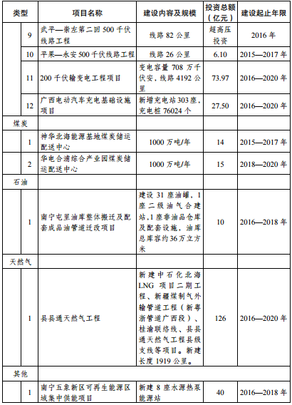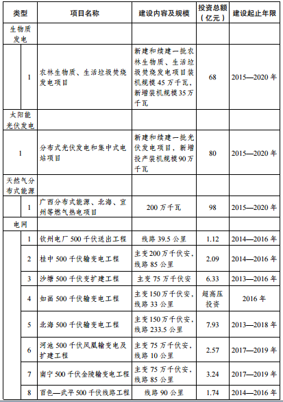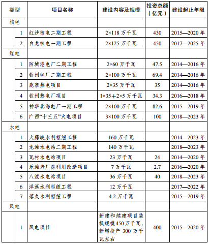 “十三五”時(shí)期廣西能源建設(shè)投資項(xiàng)目表