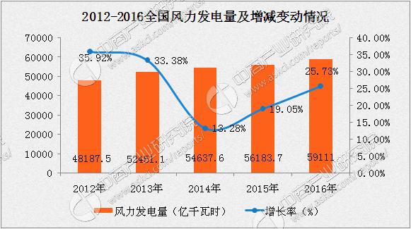2016年全國風(fēng)力發(fā)電量同比增長25.73%