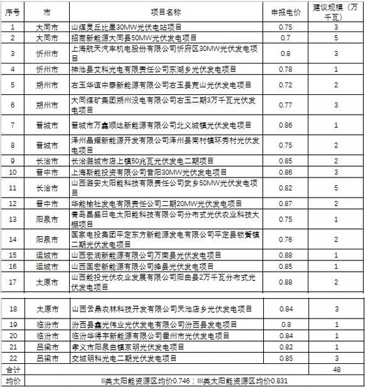 中國儲能網(wǎng)訊:日前,山西省2016年度光伏增補建設(shè)項目名單報送詳情曝光,根據(jù)該表格,此次山西省擬申報增補指標(biāo)的項目共計48萬千瓦,根據(jù)競爭性配置遠(yuǎn)策,申報電價從0.70-0.88元/千瓦時不等。