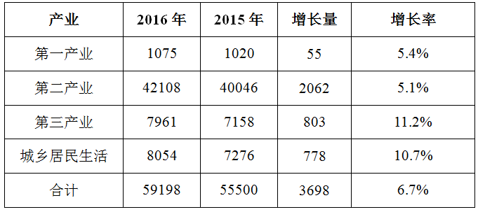 從上表可以看出,2016年“第二產(chǎn)業(yè)”(工業(yè))的用電量絕對量增加最大,但增長率最低。