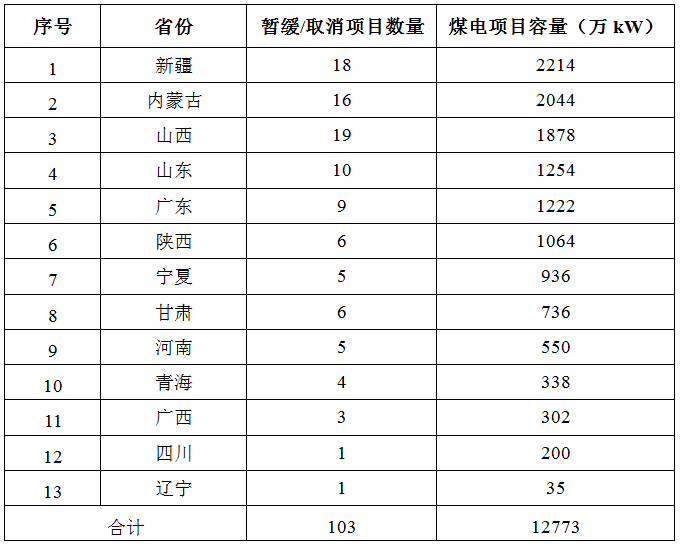 表 4:全國被叫停的煤電項(xiàng)目名單