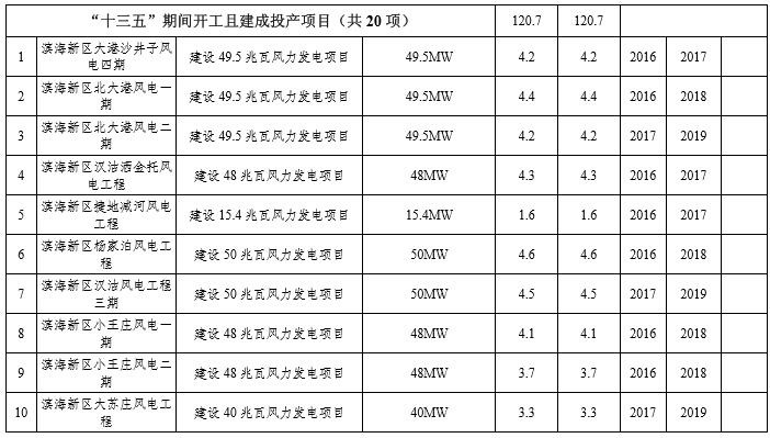 “十三五”期間,堅持陸上和海上并舉,優(yōu)化發(fā)展陸上風(fēng)電,穩(wěn)妥推進(jìn)海上風(fēng)電;鼓勵對低風(fēng)速資源的開發(fā)利用,發(fā)展分布式小型風(fēng)電。根據(jù)地區(qū)資源稟賦,以濱海新區(qū)作為重點發(fā)展區(qū)域,重點推進(jìn)北大港風(fēng)電場工程(一期裝機4.95萬千瓦,二期裝機4.95萬千瓦)、大港沙井子風(fēng)電場工程(四期裝機4.95萬千瓦)、大港大蘇莊風(fēng)電場工程(裝機4萬千瓦)、大港捷地減河風(fēng)電場工程(裝機1.54萬千瓦)、漢沽灑金坨風(fēng)電場工程(裝機4.8萬千瓦)、大港小王莊風(fēng)電場工程(一期裝機4.8萬千瓦、二期裝機4.8萬千瓦)、漢沽楊家泊風(fēng)電場工程(裝機5萬千瓦)、漢沽三期風(fēng)電場工程(裝機5萬千瓦)、漢沽大神堂風(fēng)電場工程(二期裝機5萬千瓦,三期裝機5萬千瓦)、靜海西雙塘風(fēng)力發(fā)電場工程(一期裝機4.8萬千瓦,二期裝機5萬千瓦)等陸上風(fēng)電和南港海上風(fēng)電場工程(一期裝機9萬千瓦,二期裝機10萬千瓦)、大港馬棚口海上風(fēng)電場工程(裝機10萬千瓦)建設(shè)。到2020年,全市風(fēng)電裝機總規(guī)模達(dá)到116萬千瓦。