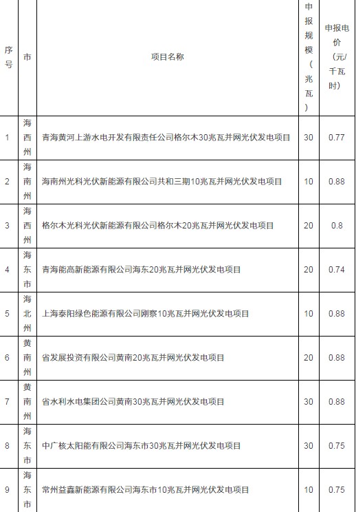 中國儲能網(wǎng)訊:按照國家能源局《關(guān)于調(diào)整2016年光伏發(fā)電建設(shè)規(guī)模有關(guān)問題的通知》(國能新能〔2016〕383號)要求,青海省能源局印發(fā)了《青海省2016年光伏增補規(guī)模競爭性配置辦法》(青能新能〔2016〕7號),并委托水電水利規(guī)劃設(shè)計總院對申請納入青海省2016年光伏增補建設(shè)規(guī)模光伏電站項目進行了評審?,F(xiàn)將評審結(jié)果公示如下:
