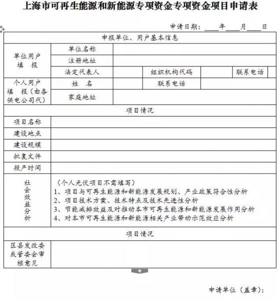 附表:上海市可再生能源和新能源專項(xiàng)資金項(xiàng)目申請(qǐng)表