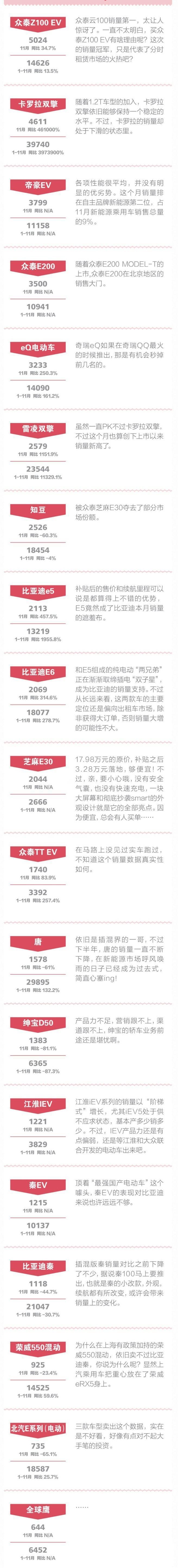 比如說(shuō),新能源汽車圈的一眾老將新兵肯定沒(méi)有想到,11月新能源的KO榜竟然是眾泰領(lǐng)跑,眾泰Z100 EV拿到榜首之位,真心是想不到啊,難道是分時(shí)租賃市場(chǎng)真的是出現(xiàn)了“我要爆發(fā)”的苗頭?而且眾泰竟然成了新能源市場(chǎng)的贏家,旗下四款車型進(jìn)入11月銷量前十強(qiáng),銷量總和為1.23萬(wàn)輛,占據(jù)33.04%的市場(chǎng)份額。這讓上個(gè)月還是銷量第一的比亞迪不得不在內(nèi)心吶喊,“我不服!”