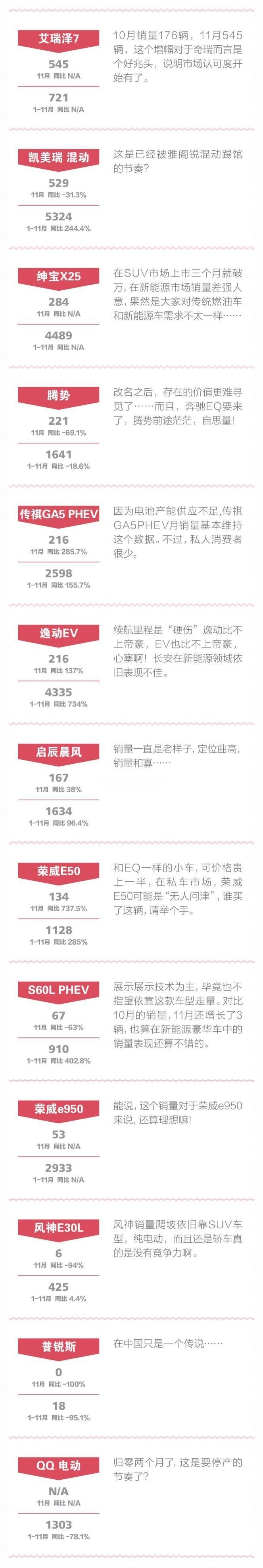中國(guó)儲(chǔ)能網(wǎng)訊:乘聯(lián)會(huì)數(shù)據(jù)顯示,新能源乘用車市場(chǎng)持續(xù)升溫,2016年11月新能源乘用車銷量達(dá)到4.18萬(wàn)輛,總體同比增速35%。其中純電動(dòng)同比增116%,但插混同比下降40%;11月的普混銷量0.96萬(wàn)輛,是插混0.45萬(wàn)輛的兩倍。而且對(duì)比之前的數(shù)據(jù)發(fā)現(xiàn),純電動(dòng)車型增長(zhǎng)迅速,各款插電混合車型都有不同幅度的下滑,顯然沒(méi)有了“我是網(wǎng)紅”的派頭了。