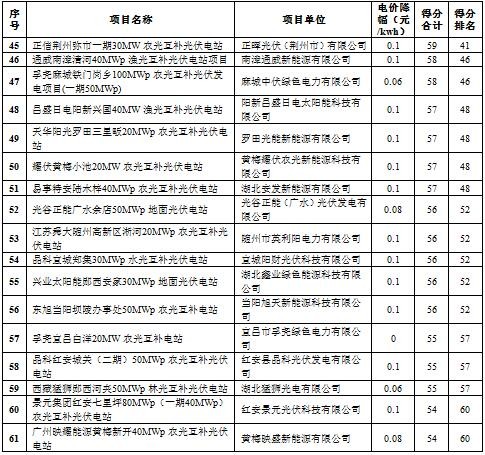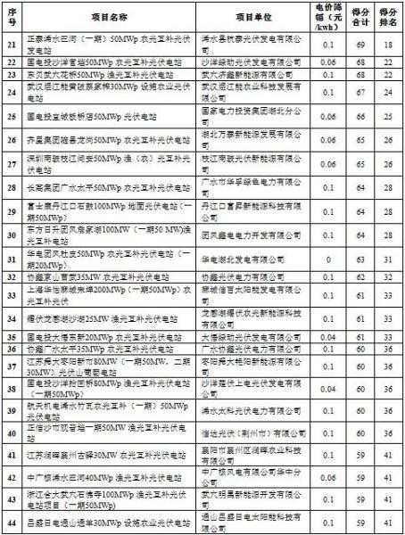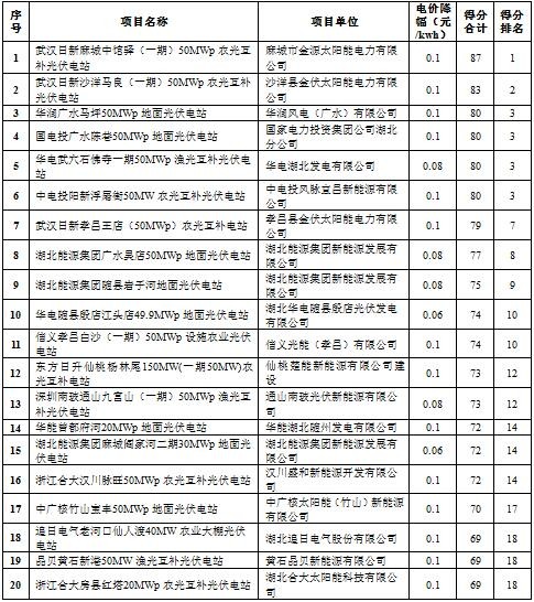 湖北省2016年光伏電站競(jìng)爭(zhēng)比選排序表