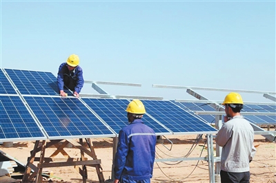 在達(dá)拉特旗恩格貝生態(tài)示范區(qū),占地1200畝的光伏電站已經(jīng)初具規(guī)模。光伏電站所有的基礎(chǔ)支架已經(jīng)全部完成,工人正在對部分光伏板進(jìn)行位置調(diào)試,目前98%的光伏板完成了安裝,并將在月底完成實(shí)現(xiàn)發(fā)電并入國電網(wǎng)。