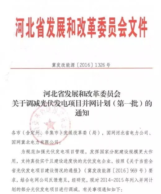 河北發(fā)改委強調(diào):求其他列入并網(wǎng)指標的項目2016年12月31日前全部并網(wǎng)。逾期未并網(wǎng)的,將視情況取消或調(diào)減指標。