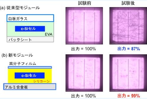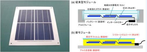由產(chǎn)綜研光伏發(fā)電研究中心模塊可靠性小組高級(jí)主任研究員原浩二郎等,與信越化學(xué)工業(yè)共同開(kāi)發(fā)。是采用以硅橡膠制成的片狀新材料封裝而實(shí)現(xiàn)的。