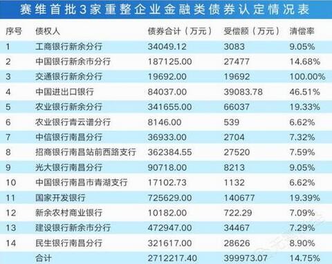 根據(jù)債權(quán)銀行提供的數(shù)據(jù),賽維集團名下三家公司金融債權(quán)總額高達295.8億元,除去部分有擔(dān)保債權(quán)外,絕大部分均為普通債權(quán)。而強裁的重整計劃,具有強制效力。