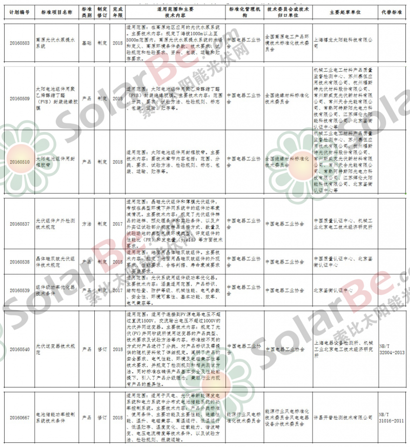 2016年能源領(lǐng)域行業(yè)標(biāo)準(zhǔn)制(修)訂計劃項目匯總表【光伏】