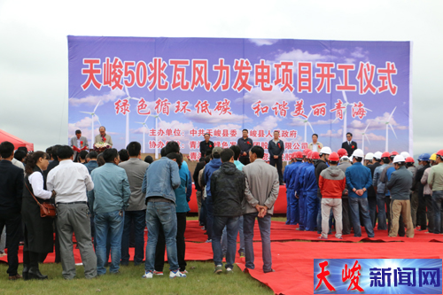 儀式上,由青海綠電集團柴達木能源投資開發(fā)股份有限公司董事長司榮國介紹項目情況;縣委副書記、縣長楊有智致辭;縣委書記馬學太宣布“天峻縣快爾瑪50兆瓦風力發(fā)電項目”開工。伴隨著開工的鞭炮、機器的轟鳴聲,領(lǐng)導和嘉賓們?yōu)轫椖块_工培土奠基。