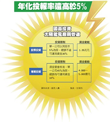 國壽董事會(huì)昨日通過將投資太陽能發(fā)電專案公司,這家新設(shè)公司首波投資金額是15.75億元,第一階段先投入6.75億元,未來再視投資計(jì)劃與營運(yùn)成果,逐步投入。