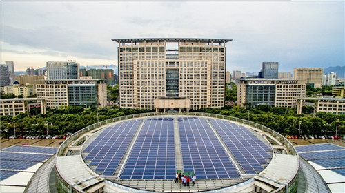 中國(guó)儲(chǔ)能網(wǎng)訊:8月3日,溫州市行政中心幾座大樓上的光伏發(fā)電板正式并網(wǎng)發(fā)電。當(dāng)日,經(jīng)過(guò)3個(gè)多月的試運(yùn)行后,溫州市行政中心辦公樓屋頂光伏發(fā)電示范項(xiàng)目正式投運(yùn)并網(wǎng),這也是省內(nèi)規(guī)模最大的地市級(jí)政府屋頂光伏發(fā)電示范項(xiàng)目。該項(xiàng)目總面積10000平方米,總裝機(jī)容量為1.066兆瓦,采用自發(fā)自用余電上網(wǎng)的電能消納方式。