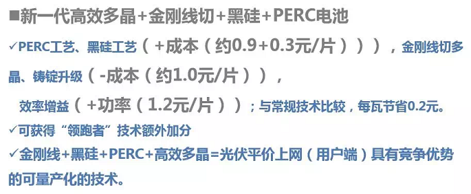 第四、PERC+黑硅+金剛線提供了平價上網(wǎng)的技術(shù)途徑,是領(lǐng)跑者計劃應(yīng)該鼓勵推廣的技術(shù)。