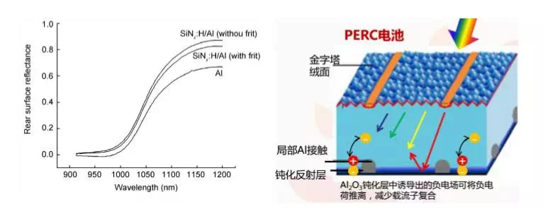 PERC技術(shù)采用Al2O3膜對背表面進(jìn)行鈍化,可以有效的降低背表面復(fù)合,提高開路電壓,增加背表面反射,提高短路電流,從而提高電池效率。