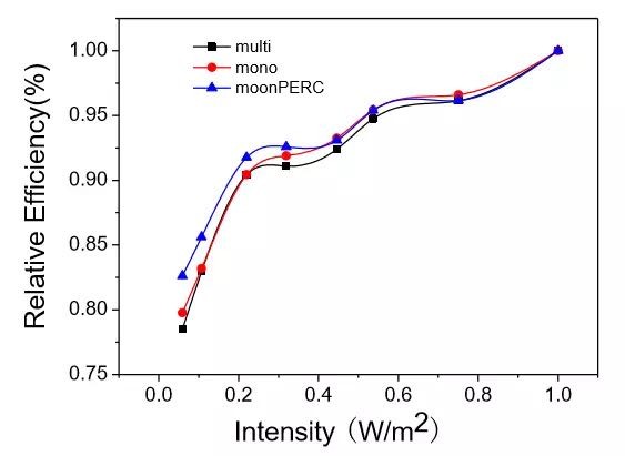 在低輻照度條件下PERC電池弱光響應(yīng)優(yōu)于常規(guī)電池。