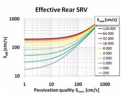 背表面有效復(fù)合速率隨著金屬區(qū)域和鈍化區(qū)域的復(fù)合速率的降低而降低。