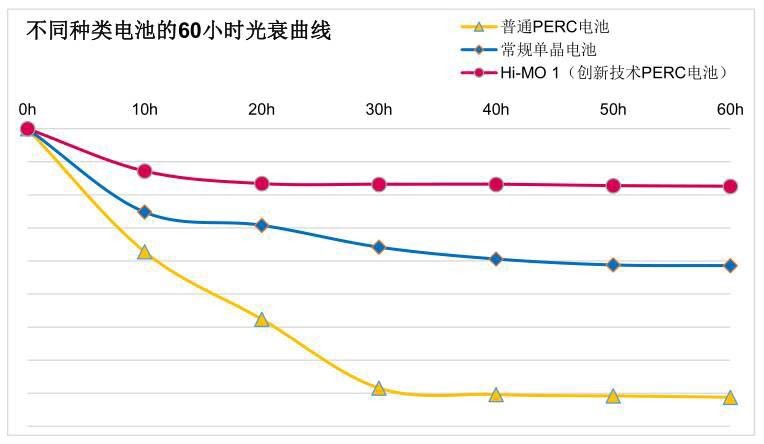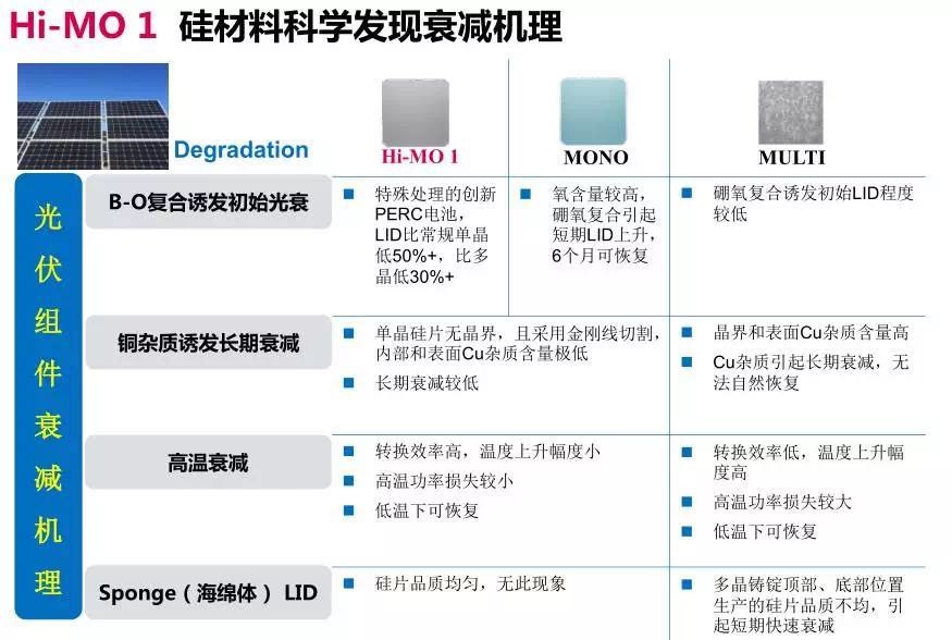 樂葉單晶PERC推出Hi - MO 1 ,采用創(chuàng)新處理技術(shù)使LID最低控制在1%以內(nèi),一般控制在1% 以內(nèi)。
