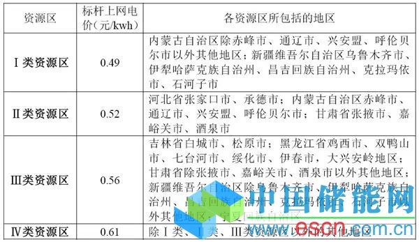 2014年12月31日,國(guó)家發(fā)改委發(fā)布《國(guó)家發(fā)展改革委關(guān)于適當(dāng)調(diào)整陸上風(fēng)電標(biāo)桿上網(wǎng)電價(jià)的通知》(發(fā)改價(jià)格〔2014〕3008號(hào)),決定陸上風(fēng)電繼續(xù)實(shí)行分資源區(qū)標(biāo)桿上網(wǎng)電價(jià)政策,同時(shí),將第I類、II類和III類資源區(qū)風(fēng)電標(biāo)桿上網(wǎng)電價(jià)每千瓦時(shí)降低2分錢,調(diào)整后的標(biāo)桿上網(wǎng)電價(jià)分別為每千瓦時(shí)0.49元、0.52元和0.56元;第IV類資源區(qū)風(fēng)電標(biāo)桿上網(wǎng)電價(jià)維持現(xiàn)行每千瓦時(shí)0.61元不變。