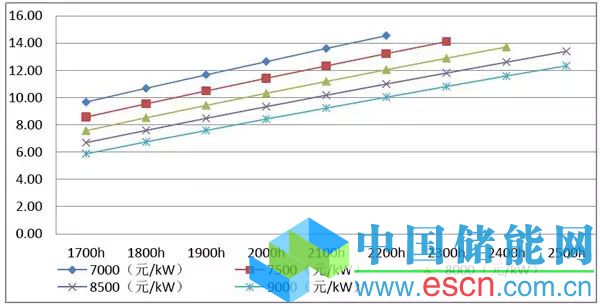 圖2:不同滿發(fā)小時(shí)數(shù)和投資水平下的全部投資內(nèi)部收益率圖