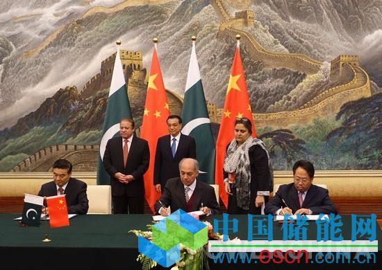 中國(guó)儲(chǔ)能網(wǎng)訊:11月8日上午,在中國(guó)國(guó)務(wù)院總理李克強(qiáng)與巴基斯坦總理謝里夫的共同見證下,中國(guó)電建所屬水電海投公司、水電顧問國(guó)際公司分別與巴基斯坦水電部相關(guān)負(fù)責(zé)人在人民大會(huì)堂簽署卡西姆港火電項(xiàng)目促進(jìn)備忘錄和Dawood(大沃)風(fēng)電投資項(xiàng)目初步實(shí)施協(xié)議。