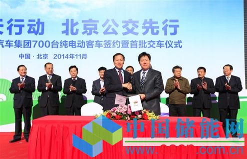 中國(guó)儲(chǔ)能網(wǎng)訊:11月2日,北京公交集團(tuán)與福田汽車集團(tuán)在北京市懷柔區(qū)隆重舉行了“700輛純電動(dòng)客車簽約暨首批交車儀式”?;顒?dòng)當(dāng)天,北京公交集團(tuán)現(xiàn)場(chǎng)接收了福田汽車交付的首批30輛純電動(dòng)公交車,這也是北京在遠(yuǎn)郊區(qū)縣首次大規(guī)模批量投放純電動(dòng)公交車。