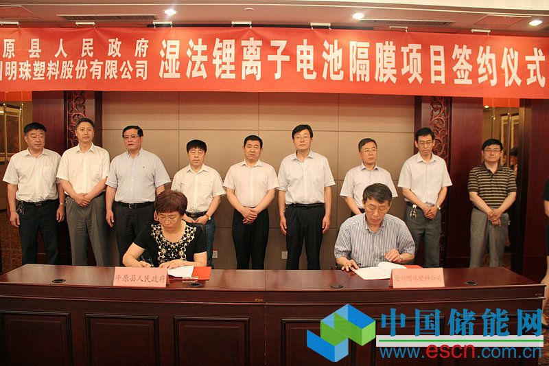 中國儲能網(wǎng)訊:6月6日,山東省德州市平原縣在桃園賓館舉行濕法鋰離子電池隔膜項目簽約儀式,平原縣領(lǐng)導(dǎo)與滄州明珠塑料股份有限公司(002108)董事長于新立出席簽約儀式。