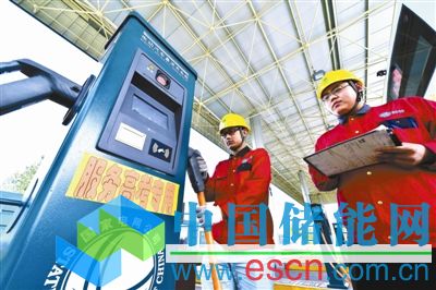圖為6月4日,淄博供電工作人員正在調(diào)試電動公交汽車充電設(shè)備,為電動公交低碳送考做準(zhǔn)備。