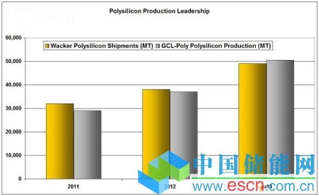 中國儲(chǔ)能網(wǎng)訊:盡管保利協(xié)鑫(GCL-Poly)多年來一直在多晶硅額定產(chǎn)量排名中榮登榜首,但是其實(shí)際上生產(chǎn)的多晶硅比其最接近的競(jìng)爭(zhēng)對(duì)手瓦克化學(xué)(Wacker Chemie)少。然而,該中國生產(chǎn)商似乎在2013年首次被其德國競(jìng)爭(zhēng)對(duì)手打擊。