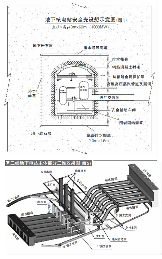 由于當(dāng)今水電站的廠房大部分置于地下,因此聯(lián)想將核電站置于地下的可行性。以下列舉幾個(gè)地下水電站實(shí)例: