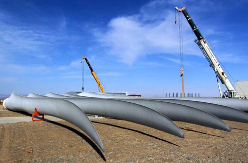 中國(guó)儲(chǔ)能網(wǎng)訊:4月24日,吊車在哈密中復(fù)聯(lián)眾風(fēng)電機(jī)組葉片生產(chǎn)基地吊運(yùn)葉片。隨著國(guó)家對(duì)新疆風(fēng)能資源的不斷開發(fā)利用,哈密風(fēng)電設(shè)備制造產(chǎn)業(yè)也得到了迅猛發(fā)展,目前金風(fēng)、北車、海裝、中復(fù)聯(lián)眾、泰勝等一大批風(fēng)電裝備制造企業(yè)建成投產(chǎn)。