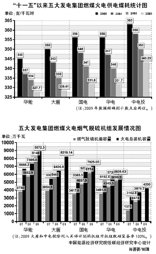 2010年是國(guó)家下達(dá)的“十一五”節(jié)能減排目標(biāo)責(zé)任書(shū)的考核年,五大發(fā)電集團(tuán)“十一五”期間節(jié)能減排的情況如何?繼上期分析了五大發(fā)電集團(tuán)火電結(jié)構(gòu)的變化之后,本報(bào)又對(duì)五大發(fā)電集團(tuán)節(jié)能減排的情況進(jìn)行了調(diào)查。