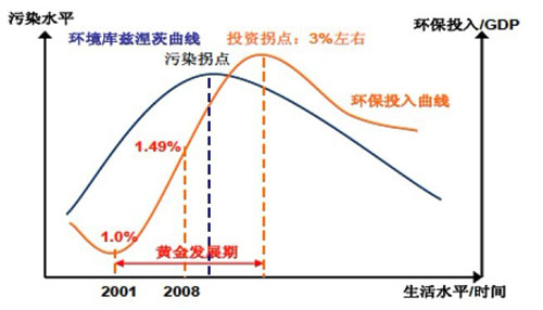 從目前世界上環(huán)保產(chǎn)業(yè)發(fā)展來看,全球環(huán)保產(chǎn)業(yè)市場規(guī)模從1992年的2500億美元增加到2007年的7000億美元,年均增長7%左右。從發(fā)達國家環(huán)保產(chǎn)業(yè)發(fā)展歷程來看,一個國家在經(jīng)濟高速增長期,環(huán)保投入達到GDP的1%-1.5%,污染的惡化才可能得到基本控制,環(huán)境狀況大體能夠保持在人們可以接受的水平;環(huán)境投入達到2.0%—3.0%,環(huán)境質(zhì)量才能得到明顯改善。同時,根據(jù)世界銀行的研究報告,當環(huán)保投入GDP占比超過1.5%以后,該國的環(huán)保產(chǎn)業(yè)將迎來快速發(fā)展期。