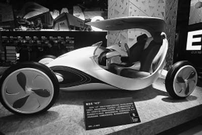 圖為展出的上汽通用館捐贈(zèng)的概念車(chē)“葉子”。這款車(chē)在設(shè)計(jì)中以電能為主要?jiǎng)恿?lái)源。車(chē)頂巨型的葉子是高效光電轉(zhuǎn)換器,可吸收太陽(yáng)能轉(zhuǎn)化為電能。四個(gè)車(chē)輪是四個(gè)風(fēng)力發(fā)電機(jī),通過(guò)捕捉風(fēng)能將其轉(zhuǎn)化為電能。