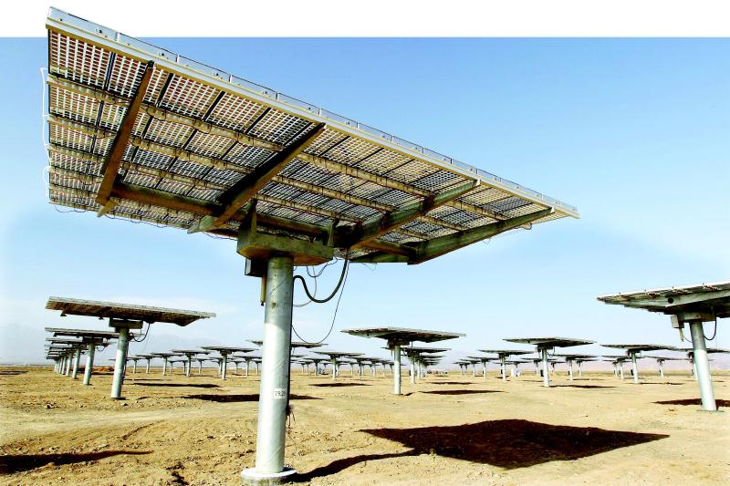 中國(guó)儲(chǔ)能網(wǎng)訊:總投資3.3億元的哈密弗光太陽(yáng)能光伏發(fā)電項(xiàng)目中的新疆首個(gè)高聚光太陽(yáng)能電站光伏發(fā)電演示支架日前并網(wǎng)發(fā)電經(jīng)試運(yùn)行,,發(fā)電效率和發(fā)電穩(wěn)定性均達(dá)到了預(yù)期效果率和發(fā)電穩(wěn)定性均達(dá)到了預(yù)期效果。。左圖為4月10日,哈密石城子光伏園區(qū)弗光太陽(yáng)能電站已安裝完成的光伏太陽(yáng)能發(fā)電支架工人在調(diào)試太陽(yáng)跟蹤器。