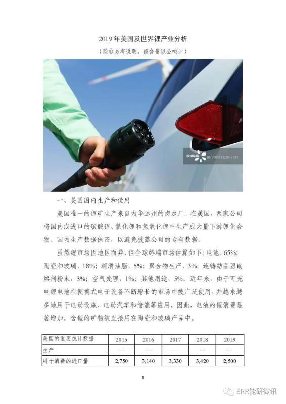 2019年美國及世界鋰產(chǎn)業(yè)分析